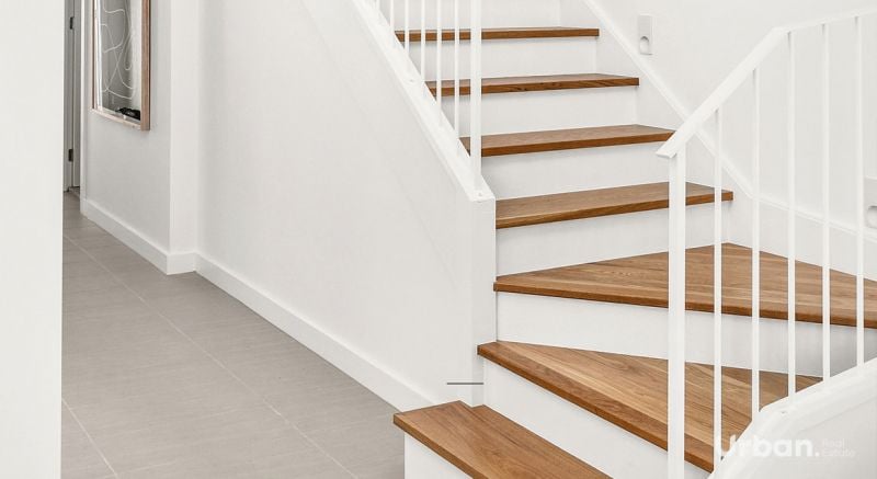 - Ttimber staircase w white kickboards