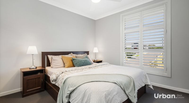- High ceilings, plantation shutters, and LED downlights throughout the home.