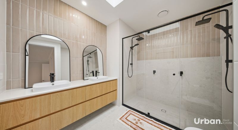 - Spacious master suite with walk-in robe, ensuite with his/her vanity, dual shower heads and tiled ledge fitted with skylight soaking in the natural light