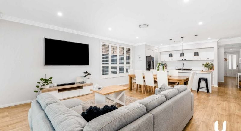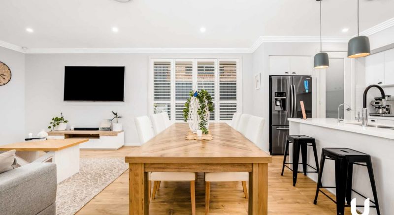 This is a 4 bedroom single by Mojo, Stepping through the gorgeous baby pink front door, you are greeted by top quality timber floorboards that flow through the home and help showcase the timeless Scandi X Coastal styling the owners have committed to throughout.