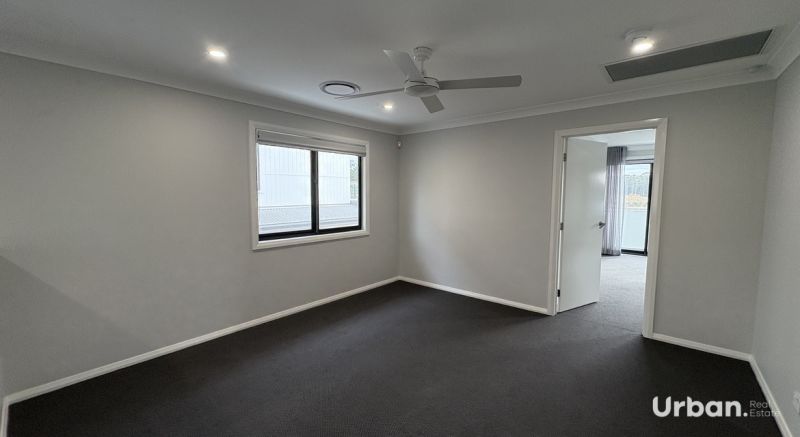 Situated in the new Caphilly Estate near Huntlee Town Centre, this brand new, premium two-storey family home blends modern design with luxury finishes. With a neutral palette throughout, it's a perfect blank canvas for your personal style. Downstairs offers a sunlit home office, powder room, open-plan living and dining, and a modern kitchen with island bench, walk-in pantry, gas cooking, and stainless steel appliances. The alfresco area flows off the main living zones, overlooking a low-maintenance backyard. Upstairs includes four spacious bedrooms with ceiling fans and built-ins. The master retreat features a walk-in robe, balcony, and ensuite. Second living area and a central bathroom completes the upper level. Extras include ducted air conditioning, security system, internal laundry with side access, ample storage, and a double garage with automatic doors.