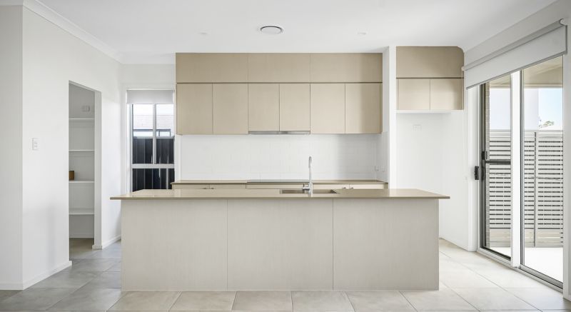 The open-plan layout seamlessly connects the kitchen, dining, and living areas - creating an inviting space ideal for family living or entertaining. The modern kitchen is the heart of the home, featuring stone benchtops, stainless steel appliances, and ample storage.
