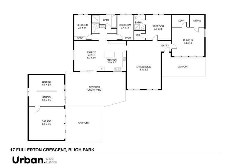 - Double garage with attached studio (possible granny flat STCA)