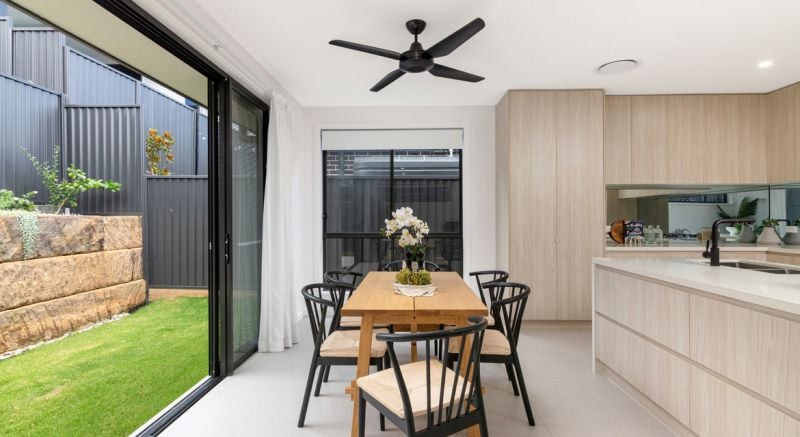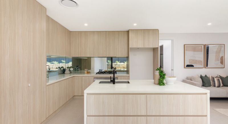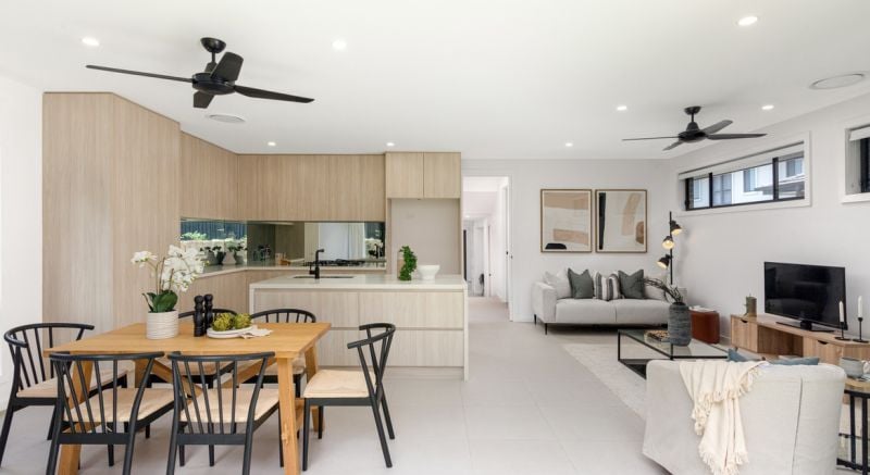 Walking up the well lit hall; 3 steps up the home opens up completely to a very large full width open living kitchen and dining – The heart of the home & perfect backdrop for future memories particularly when the stacker doors of the rear of the house are fully open bringing the outside in providing more than enough room for family gatherings.