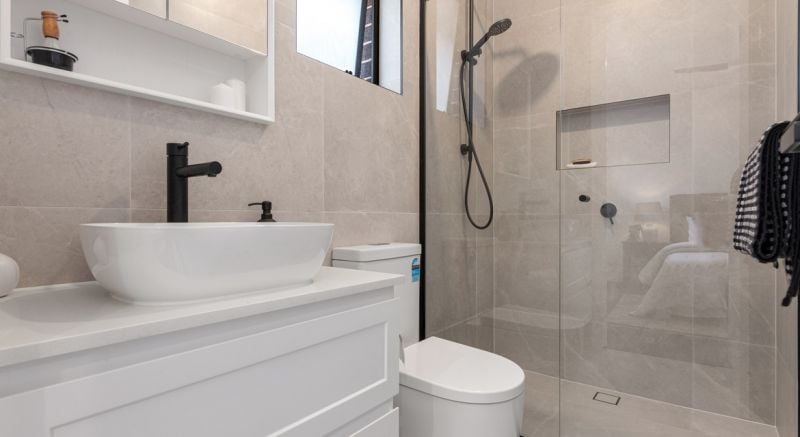 - Floor to Ceiling tiles in bathrooms