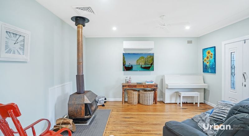 - Throughout the home, you'll find hardwood flooring, split system air conditioning and a welcoming combustion fireplace, creating an inviting atmosphere for everyday living
