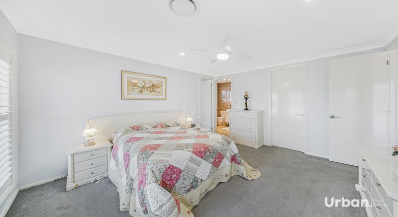 Inside, the finish speaks for itself: plantation shutters throughout, 40mm stone benchtops in the chef's kitchen, 20mm stone to bathrooms and laundry, tiled traffic areas, ducted air and ceiling fans. A rare triple garage with an extra toilet and extensive storage gives you the internal space most homes don't.