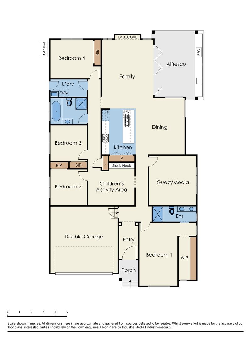 - 5 great sized bedrooms + study nook & kids activity area