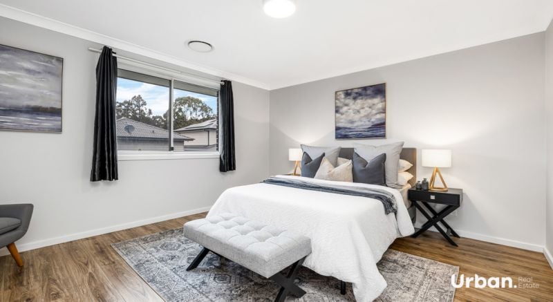 Discover your perfect family home in the sought-after Stonecutters Ridge Estate at 13 Eldorado Street, Colebee, represented by Nathan Fyffe of Urban Real Estate. From the contemporary facade to the spacious interior, this property is a must-see. Featuring four generously sized bedrooms, two with ensuite access, and the potential for a fifth bedroom or study downstairs, it offers versatility for growing families.