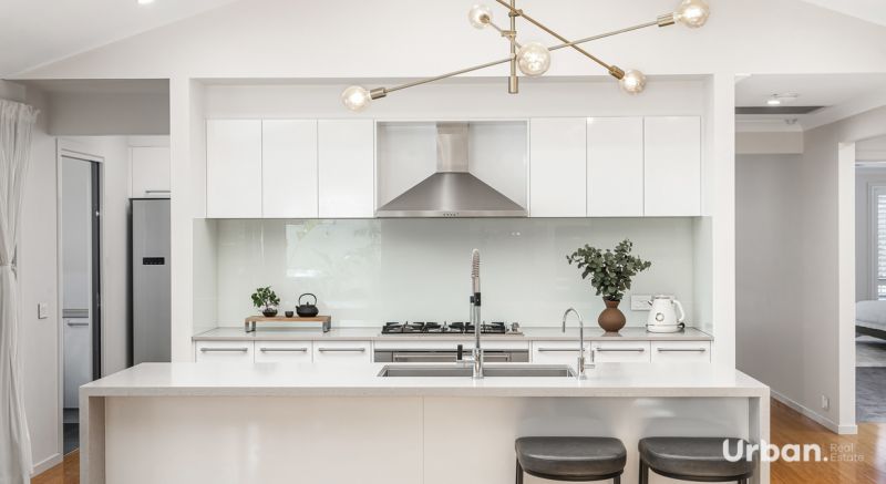 - Gourmet kitchen with 40mm waterfall-edge stone benchtop, 900mm gas appliances, and a butler's pantry.
