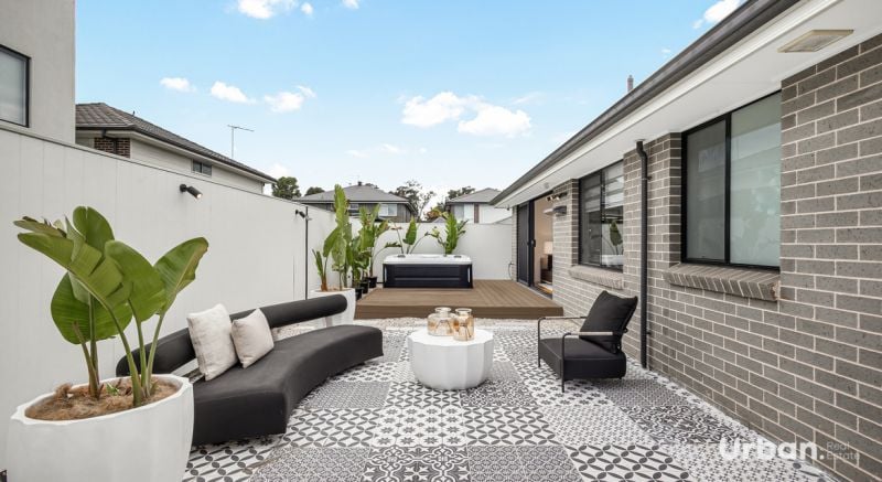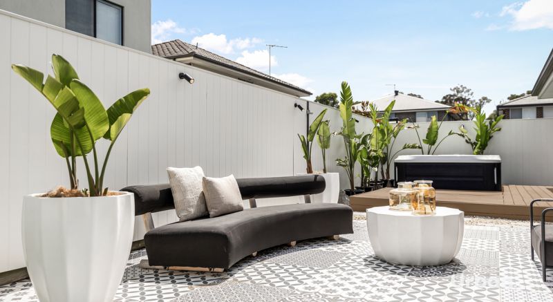 - Alfresco area perfect for an outdoor table and lounge, plus a secondary entertaining area with decorative tiles and a firepit.
