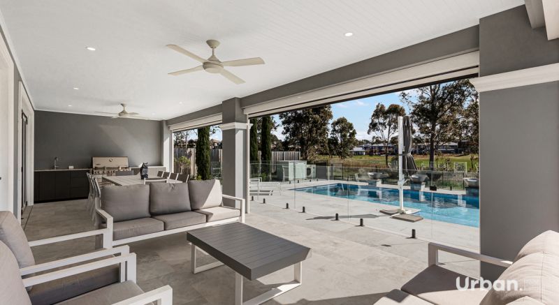 - Multiple indoor/outdoor living zones, alfresco kitchen with barbecue and sink, and landscaped gardens.
