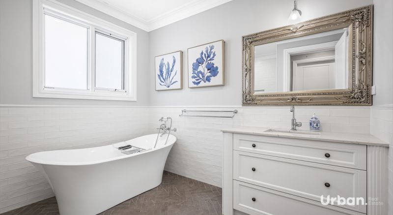 From the wrought iron entry door to the manicured landscaping and French provincial tiles, every detail has been curated to create a home of distinction. Generous proportions flow throughout, including multiple living areas, two bedrooms downstairs, and a seamless indoor–outdoor transition to the entertaining spaces.
