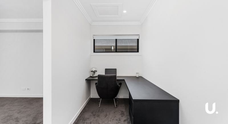 - Study nook with built in cabinetry adjoining the upstairs rumpus and balcony