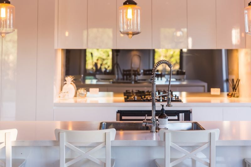 - Chic stone kitchen with butler's pantry, mirrored splash back and high end finishes