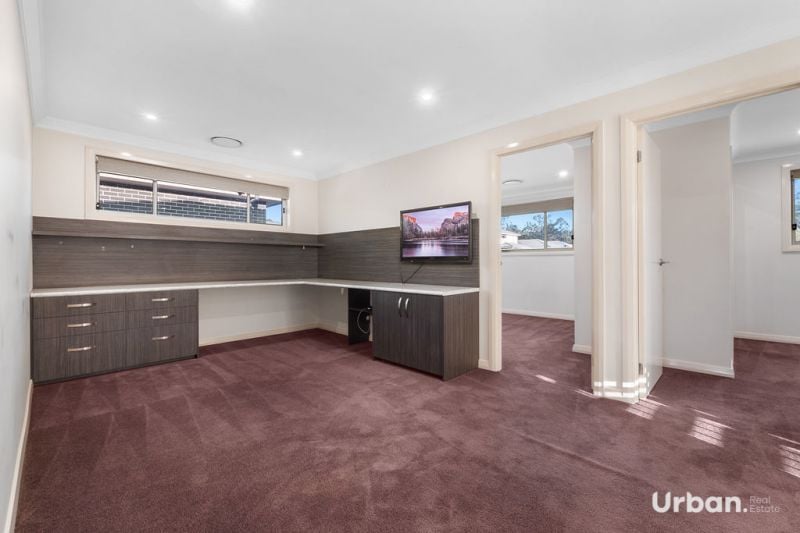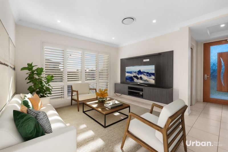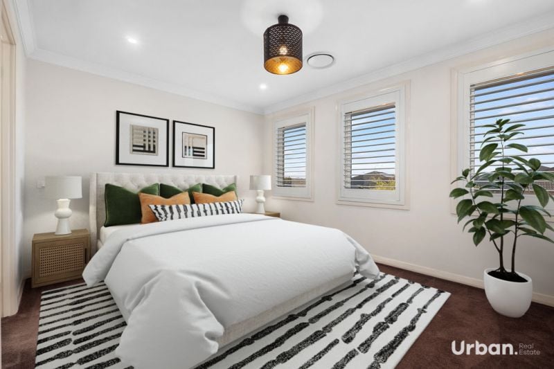 Urban Real Estate is proud to introduce 42 Woodburn Street, Colebee-a beautifully designed home offering both elegance and functionality in a prime location. Situated on a large 482sqm block, this sought-after Wisdom-built home boasts great street presence and is just a short walk to shops and bus stops. The versatile layout includes 4 bedrooms plus a downstairs study, which can easily be utilized as a fifth bedroom. The home is filled with high-end finishes, including upgraded bathrooms with floor-to-ceiling tiles and 40mm stone vanities, while additional cabinetry in almost every room adds extra storage and appeal.
