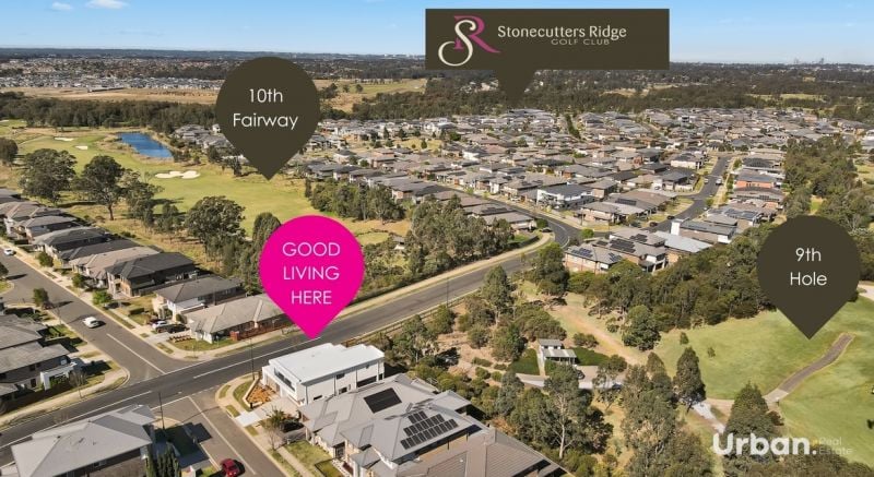 Urban Real Estate Colebee welcome you to 1 Woodhall Close, Colebee-an extraordinary property that epitomizes luxury living, with the added benefit of backing onto the prestigious Stonecutters Ridge Golf Course. This beautifully designed home offers serene golf course views and the rare advantage of having only one neighbouring property, ensuring unmatched privacy and tranquillity.