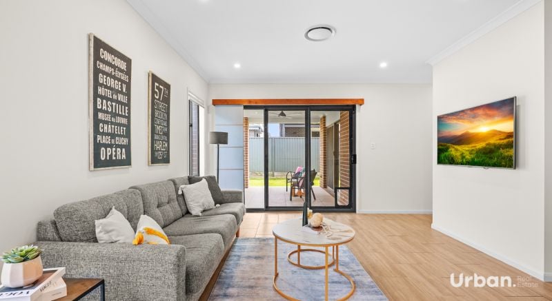 Welcome to 25 Stonecrop Street, where thoughtful design meets effortless living. This single-storey, northeast-facing gem sits in a serene setting, just a short stroll from Denham Court Public School and Goodstart Early Learning School. Designed with families in mind, this home combines modern comfort, premium features, and unbeatable convenience, making it the ideal choice for those seeking both style and practicality.