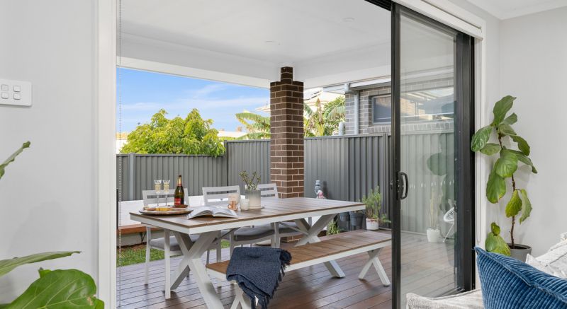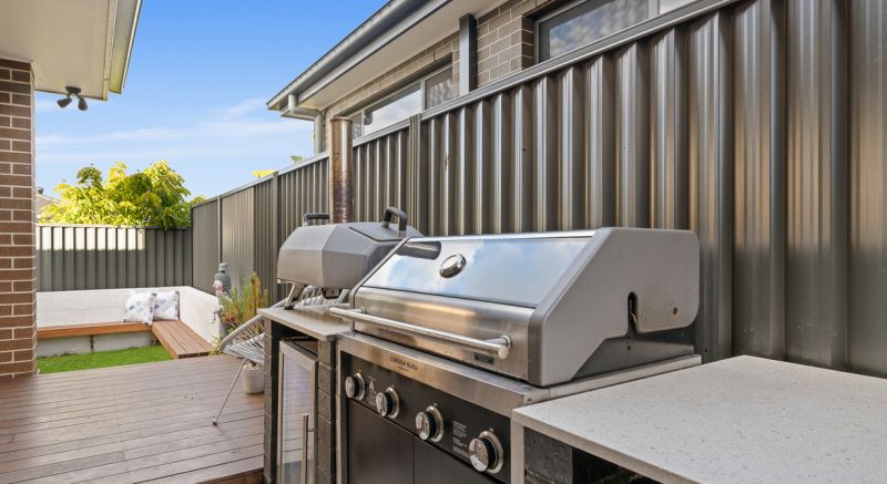 - Alfresco with outdoor kitchen, bar fridge, and seating area for year round entertaining.