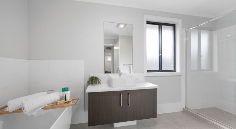 - Master suite with his & hers walk in robes, double vanity ensuite, and ceiling fan.