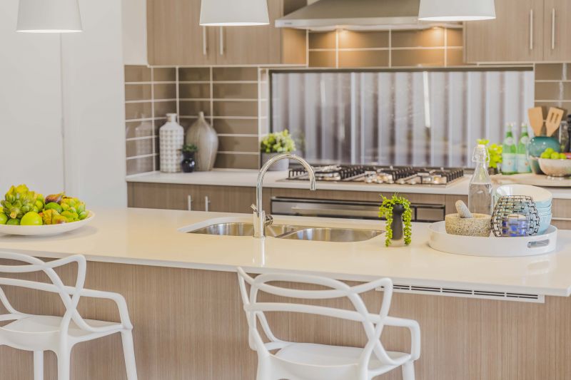- Kitchen features 20mm stone benchtops, wide island bench, soft close cabinetry & Omega appliances
