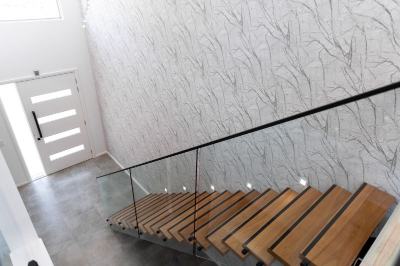 - Crystal chandelier, sensor alarm system and floating staircase with frameless glass balustrades