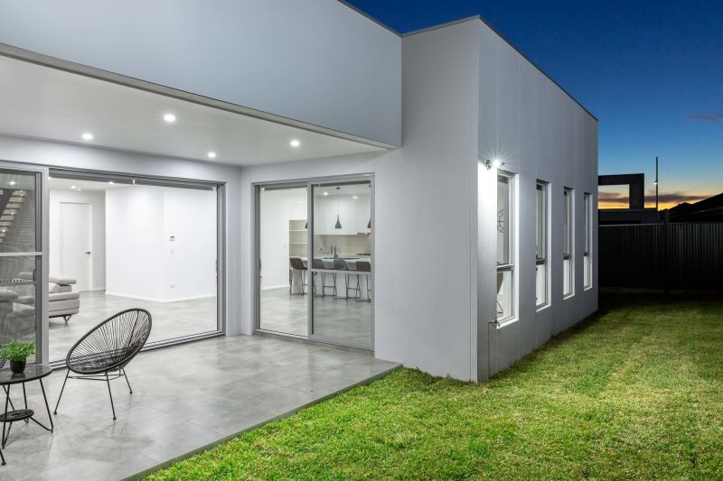 - Stacker glass sliding doors open to the rear enclosed level lawn with high fences for privacy