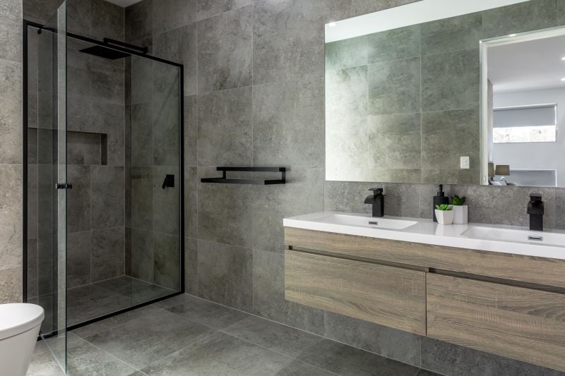 - Bathrooms feature floor to ceiling tiles and sleek black fittings