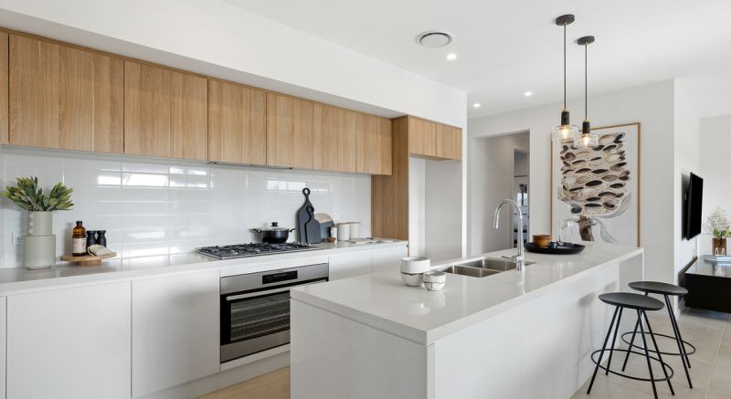- 400mm Stone bench tops in the kitchen with waterfall edge