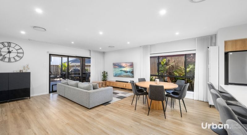 - Modern kitchen and open plan living, flowing onto a covered patio for outdoor dining.