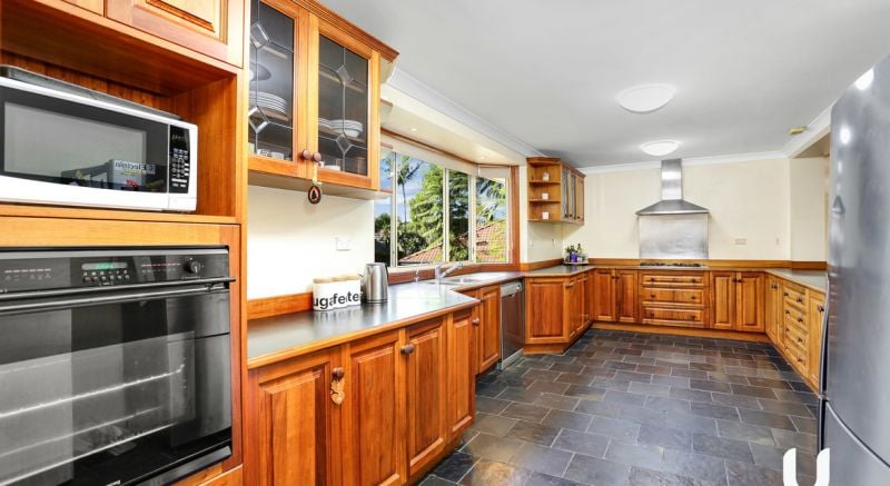 - The huge wooden kitchen acts as a focal point of the home with gas cooking, dishwasher and walk in pantry
