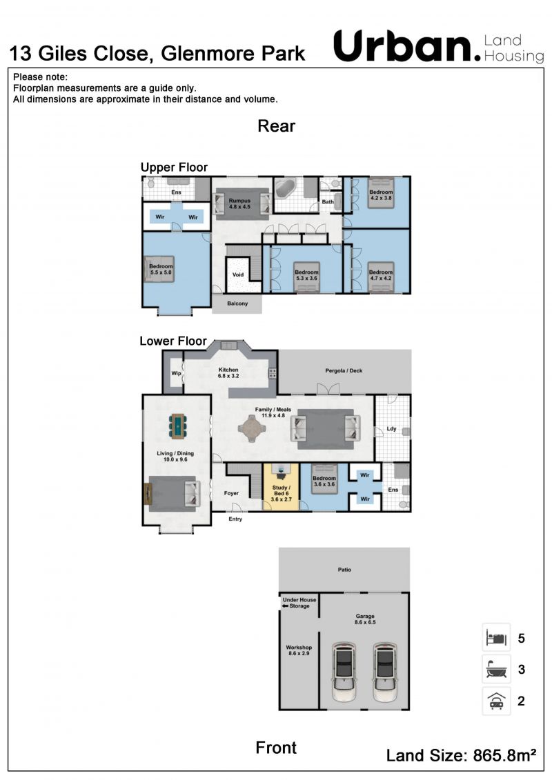 - Study/optional 6th bedroom down stairs, ducted air-conditioning, plantation shutters and plenty of storage.