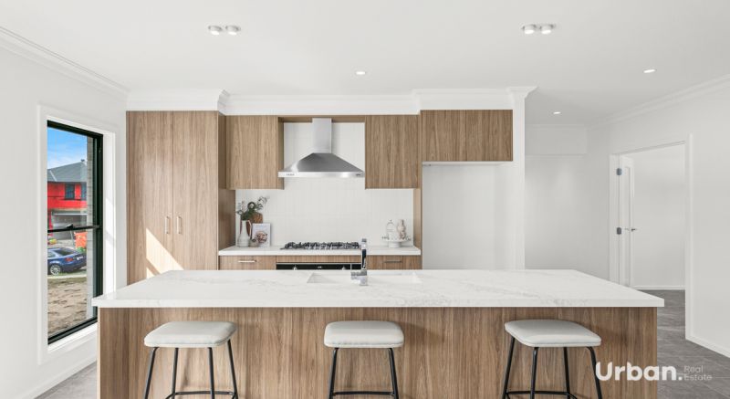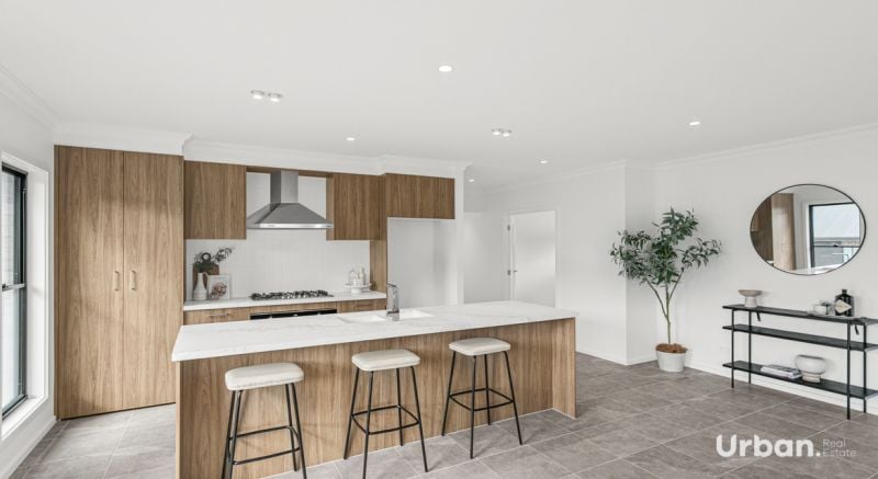 As you step inside, you'll be greeted by a modern and inviting interior with grey tiles and quality fixtures. The stunning timber laminate kitchen is equipped with 900mm appliances, 40mm stone marble look benchtops, tiled splashback and ample storage provided in the hidden walk in pantry. The open plan kitchen, lounge and dining area provide a seamless flow to the outdoor covered alfresco area perfect for entertaining and spending quality time with family and friends. A second living area offers flexibility for various purposes and provides more space for relaxation or entertainment.