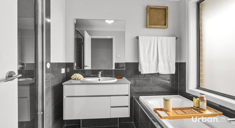 - Spacious master bedroom with an ensuite featuring a bathtub, walk-in robe, and ceiling fan