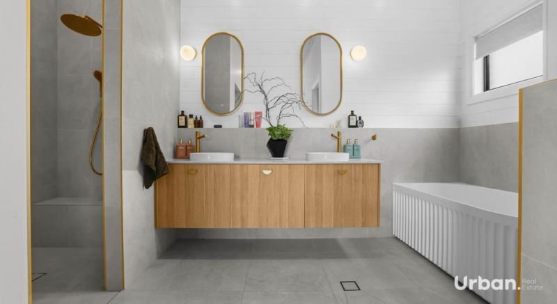 - Master suite with walk-in wardrobe and a designer ensuite featuring double vanity, soaking tub, and private WC