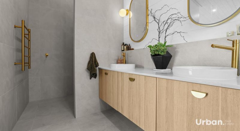 - Contemporary bathrooms with stylish tilework and gold fittings