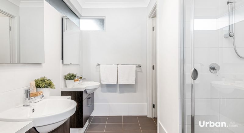 Designed with the family in mind, the home itself boasts two living spaces, open plan kitchen living and dining areas with floating laminate floorboards to complement the light, bright colour scheme and an array of windows to maximise all day sun and light throughout the home. The property also contains three full bathrooms, downlights throughout the living areas and ducted air conditioning.