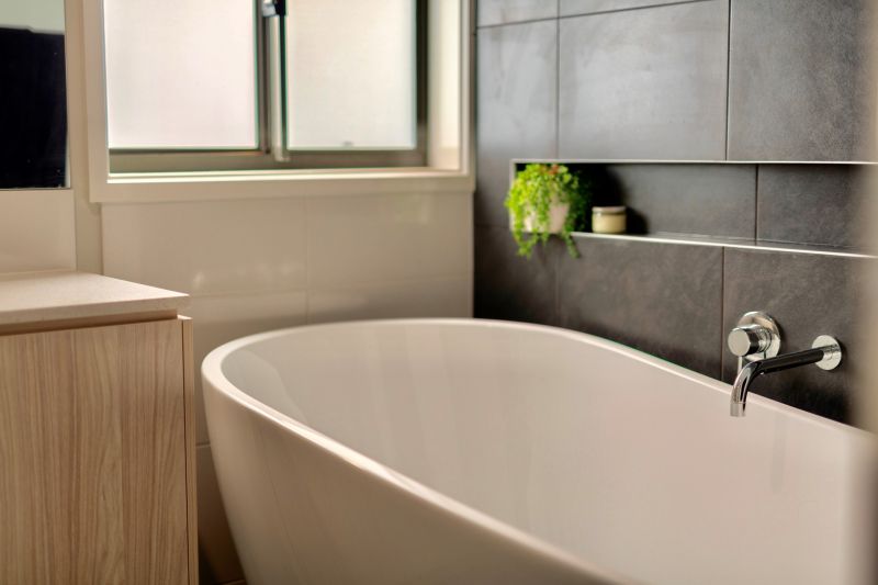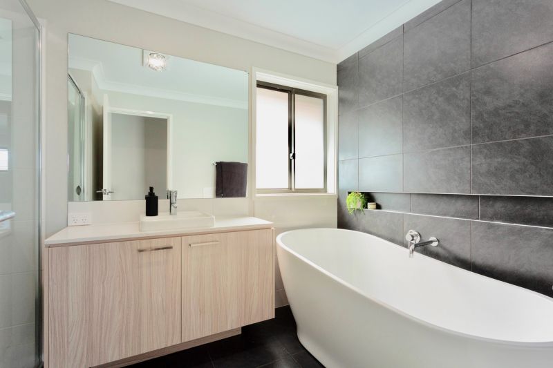 - Matt black floor to ceiling tiles in the bathroom