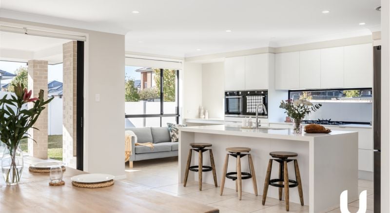 As you enter the home you are greeted by an oversized living and formal dining space which flows on to the informal living and dining are. The lower level of the home also encompasses a home gym or downstairs bedroom, private theatre room for family movie night and a full downstairs bathroom and laundry. The heart and hub of the home- the kitchen, comprises of 40mm stone benchtops, walk in pantry with sink, 900mm gas appliances and double oven.