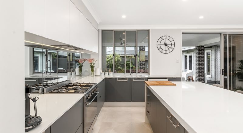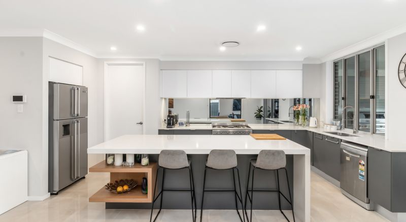 The property comprises of six bedrooms, two of which are downstairs with their own ensuites. The massive open plan kitchen/dining area is special with 60mm stone benchtops, 900mm gas appliances and walk in pantry. This flows seamlessly out to the outdoor dining area & double sized alfresco perfect for the summer BBQ!