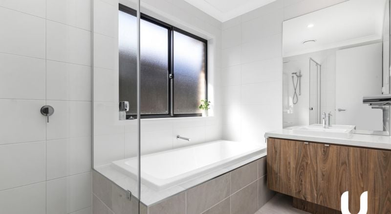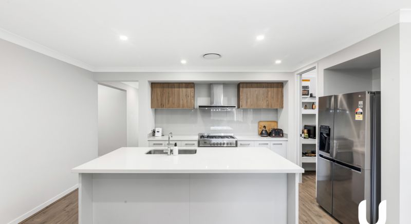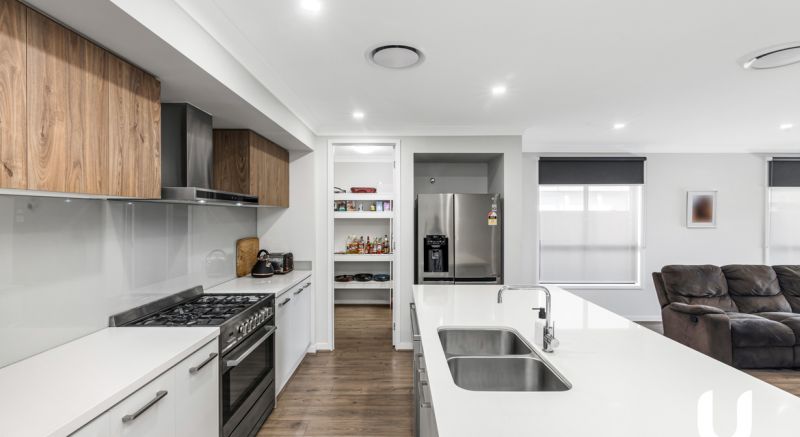 The home comprises of four bedrooms including master with ensuite at the front of the property. As you walk down the hall you will find a separate media room for movie nights, and open plan kitchen living and dining room, then out to the under cover alfresco. The kitchen features 40mm stone benchtops and glass splashback with a walk in pantry.