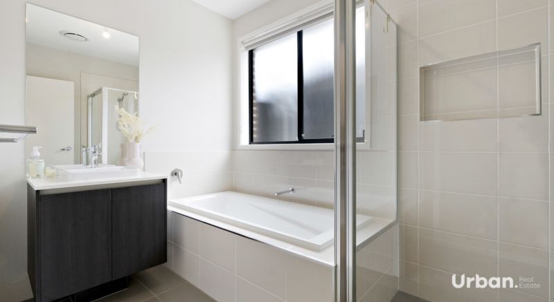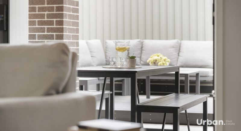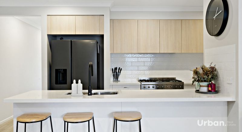 The home comes highly appointed with 40mm ceaser stone bench tops at the heart of the home and tasteful décor choices that compliment each other beautifully including but not limited to butcher brick splash backs, under-mount sinks, All matte black fittings and fixtures – Sheer curtains & Plantation shutters in combination to provide a really luxe feel that is evident throughout the home.