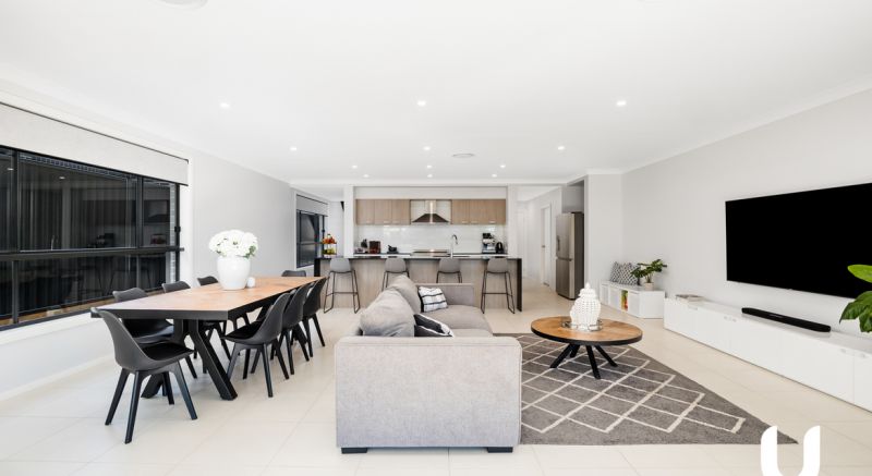The home offers an expansive floorplan with 30 squares of internal living and an open plan layout like youve never seen before in the Estate. As you enter, you are welcomed by the grand entrance with glass balustrade staircase and wide hall way leading to the main living area and kitchen that seamlessly flows out to the extra wide under cover alfresco, perfect for all year round entertaining.