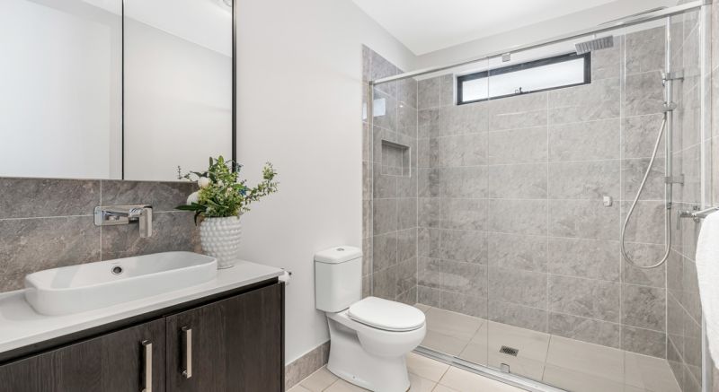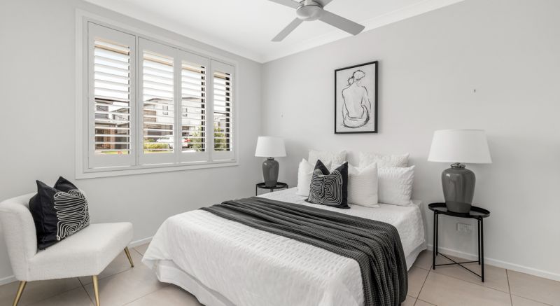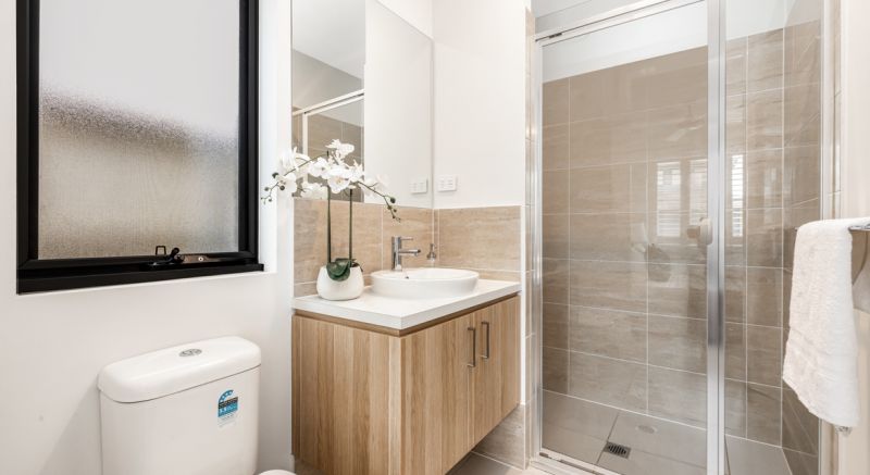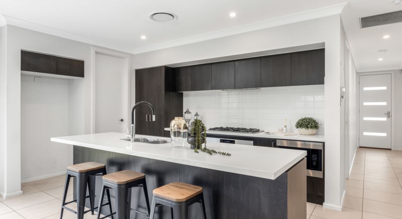 The open plan kitchen living and dining acts as the heart of the home with a secondary living or formal dining room for extra space. The kitchen comprises 900mm gas appliances accompanied by 40mm stone benchtops.