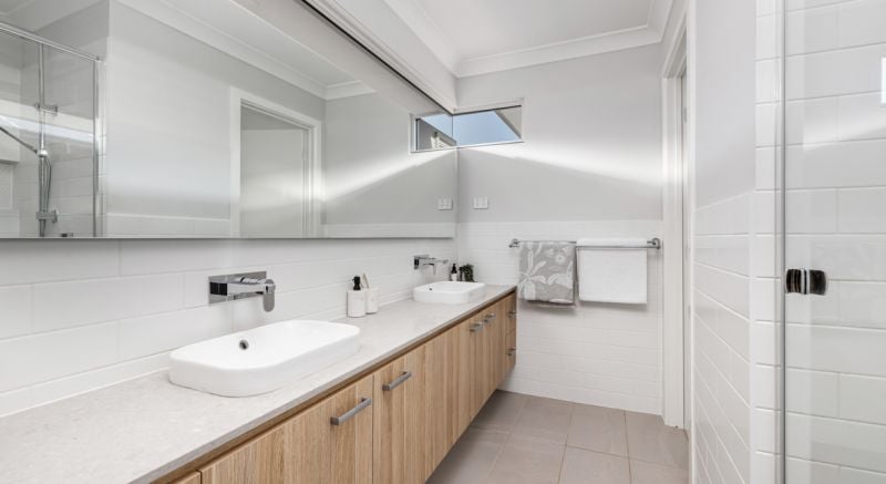 - 20mm Ceaser stone in the bathrooms