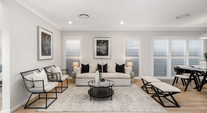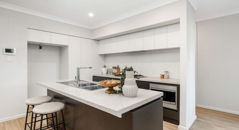 23 Elderberry is a standout in one of the most iconic locations in Elara, The Melonba Lake section. Stepping in you are greeted by high ceilings and the glowing oak floorboards that roll out flawlessly to the living at the rear and out toward the ample lush yard with a feature retaining wall and custom built sun bench.