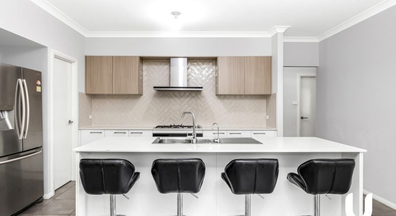 The home comprises of four bedrooms including master with ensuite at the front of the property. As you walk down the hall, the home opens up to the generous sized, living, kitchen and dining area, then out to the under cover alfresco. The kitchen features stone Caesarstone benchtops and tiled splashback with step in pantry.