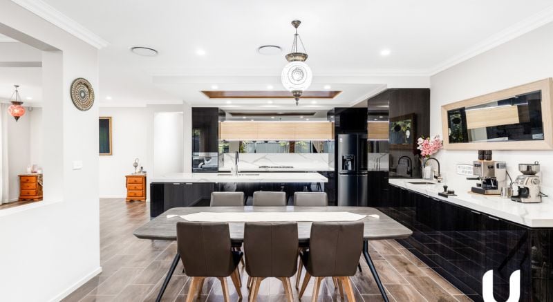 - Wooden panelling over kitchen bulk head, under cover alfresco, front patio & balcony