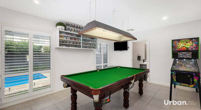 Stepping in the property has an extra wide entry hall, High ceilings, Downlights throughout & a myriad of other upgrades included but not limited to Plantation Shutters and feature lighting throughout to tie in with the Modern Inspired interior. This is a grand home, with grand spaces ready to cater to a growing family – The games room at the rear is set up for entertaining and features a full bathroom ready for those coming in from the pool !
