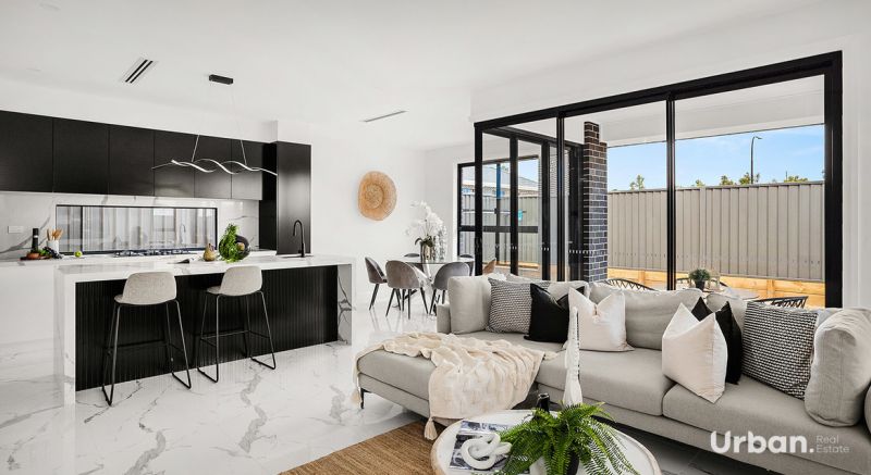 Upon arrival the formal lounge embraces you, evoking an immediate sense of tranquillity and relaxation. Moving forward, you will encounter the spacious bedroom downstairs, seamlessly connected to the open-plan kitchen, living, and dining area. This space gracefully extends to the tiled undercover alfresco zone and the meticulously landscaped yard, creating a seamless blend of indoor and outdoor living.